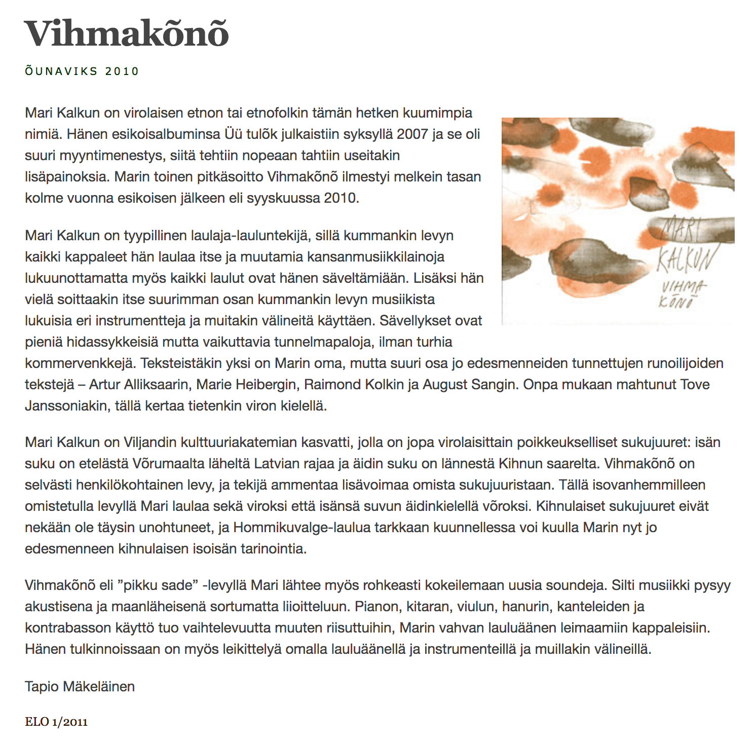 • “101 Eesti Popmuusika Albumit” (arvustus, Mart Juur, 2010, Varrak)